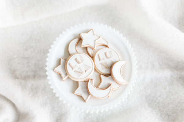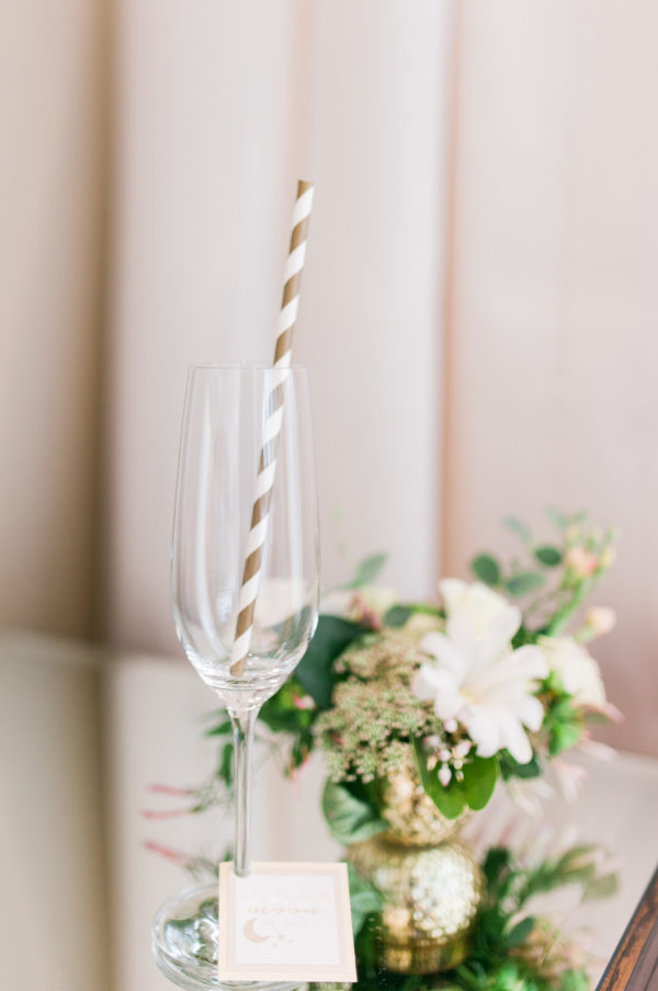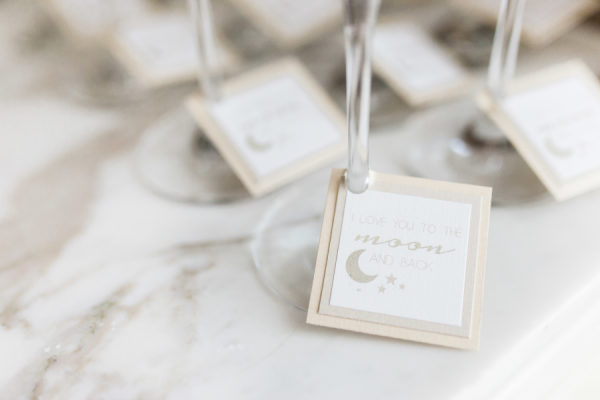 There is nothing more precious than welcoming a sweet bundle of joy into the world, and this “lunar designed” soiree to celebrate Luna’s first 100 days was filled to the brim with the perfect little details. The chic party was planned by CountDown Events with former Bachelorette, Jillian Harris, for her assistants newborn, baby Luna and took place in the Halo Suite at the Loden Hotel in Vancouver, Canada. From the delicate paper stars falling from the ceiling to the custom cake with moons and stars cascading from the top, to the “I love you to the Moon and back” stationery, the party was a pinterest worthy celebration. The details didn’t end there, even DIY elements such as the lovely floral ice cubes by our CountDown Events staff for the champagne added a feminine note to the momentous occasion. Guests were treated to custom cookies, marshmallows, cotton candy and macarons – all crafted with the lunar theme for sweet baby Luna.