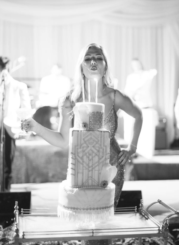The team of vendors that were quickly assembled were some of the best in the industry which made for an epic experience. The weekend-long celebration culminated in the party of all parties. The birthday girl sparkled in a sequin Monique Lhuillier gown and Coady Culha jewelry. Guests in period-attire gathered in front of 1920’s cars for photos by Elizabeth Messina during cocktails and then were invited to Villa Sevillano’s lower lawn for dinner.